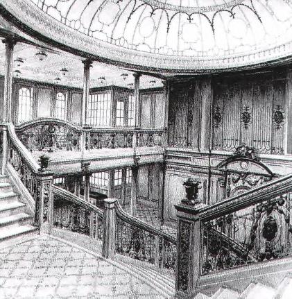 (Zeichnung zeigt das Treppenhaus vom Schwesterschiff Britannic)