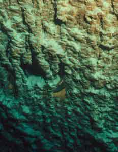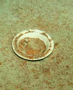 durch die starke Strömung an dieser Stelle abgeschliffen, oder die rostfressenden