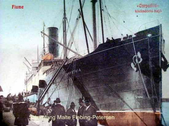 Die Carpathia fuhr auch im 1. Weltkrieg weiter im Liniendienst – bis 1915 im Mittelmeerdienst und ab dann von Liverpool aus nach New York und Boston.